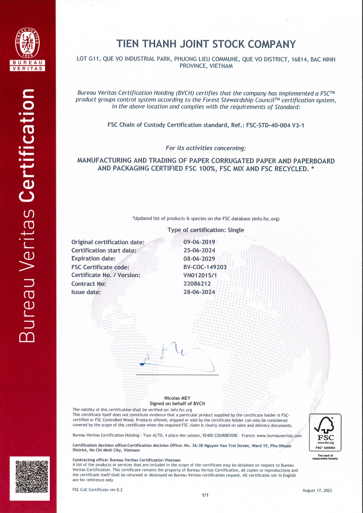 Chứng chỉ Chuỗi hành trình sản phẩm FSC